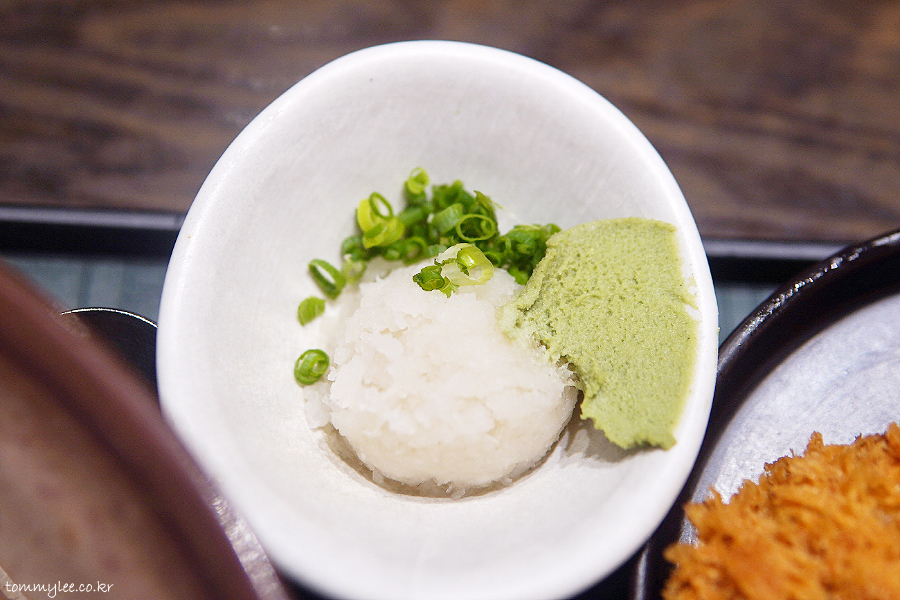 히야시 키츠네 우동이지만.. 오로시, 네기, 와사비 3종 같이 나오고요..