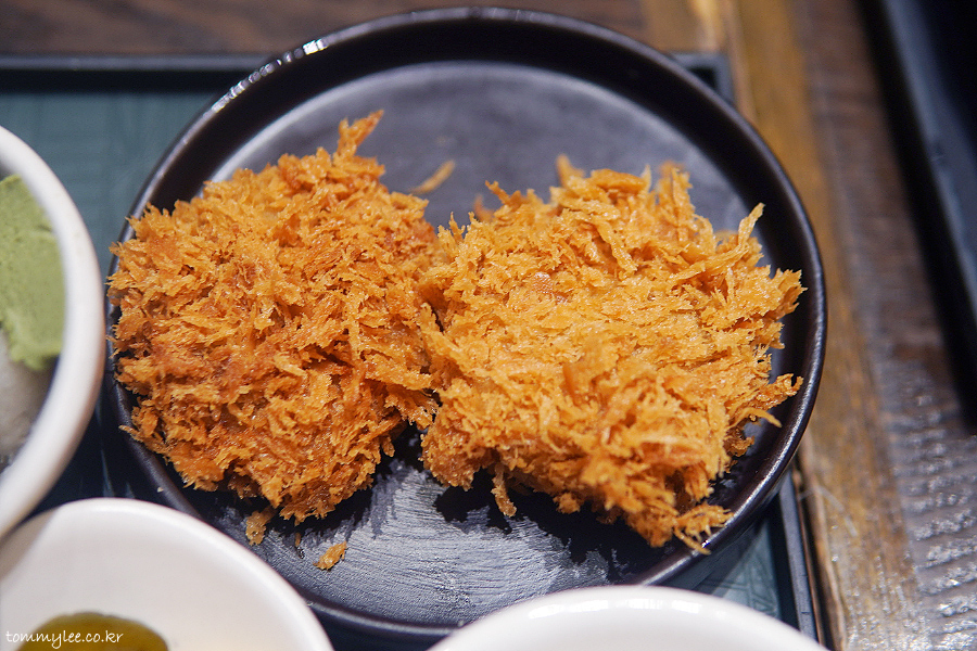 미니 카츠는 동글동글 귀엽.. 참깨를 갈아 톤카츠 소스와 함께 냠냐므..