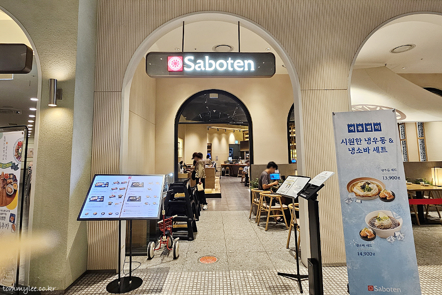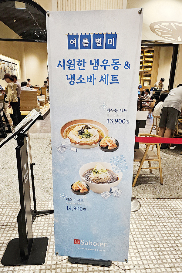 사보텐 여름별미.. 시원한 냉우동 & 냉소바 세트 프로모션 중.. 일본 사보텐에는 없는 사보텐 코리아 독자 메뉴.. 여름한정 히야시 누들 2종..