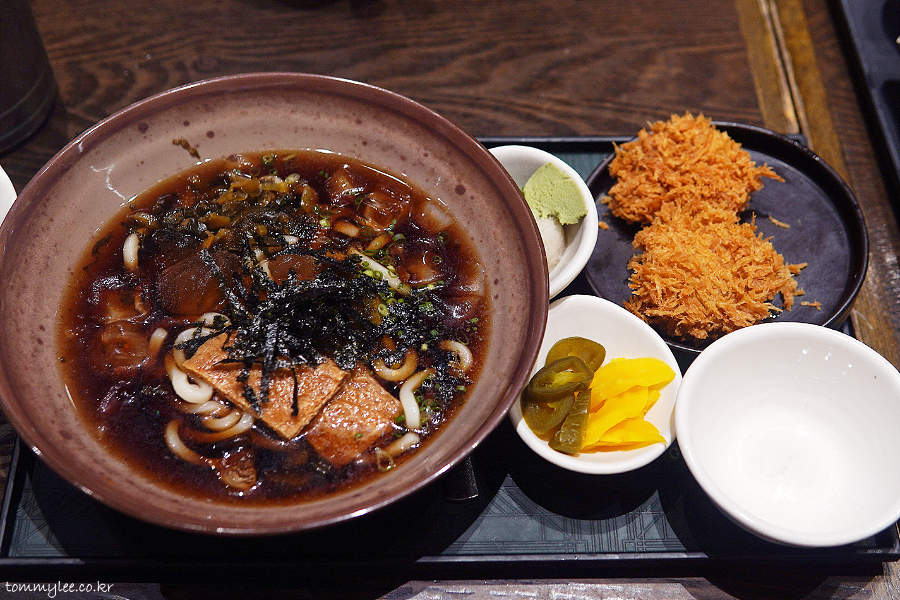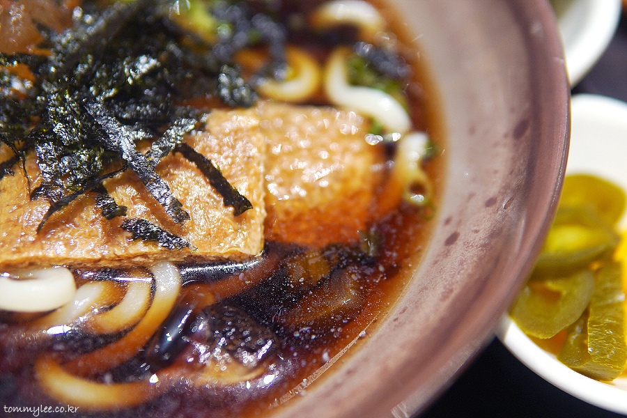 판형태의 유부 토핑이 올라가는데.. 유부를 매장에서 튀겨내는 형태가 아니고 기성품을 써서 짜고 얇고 식감도 좋지 않아요..