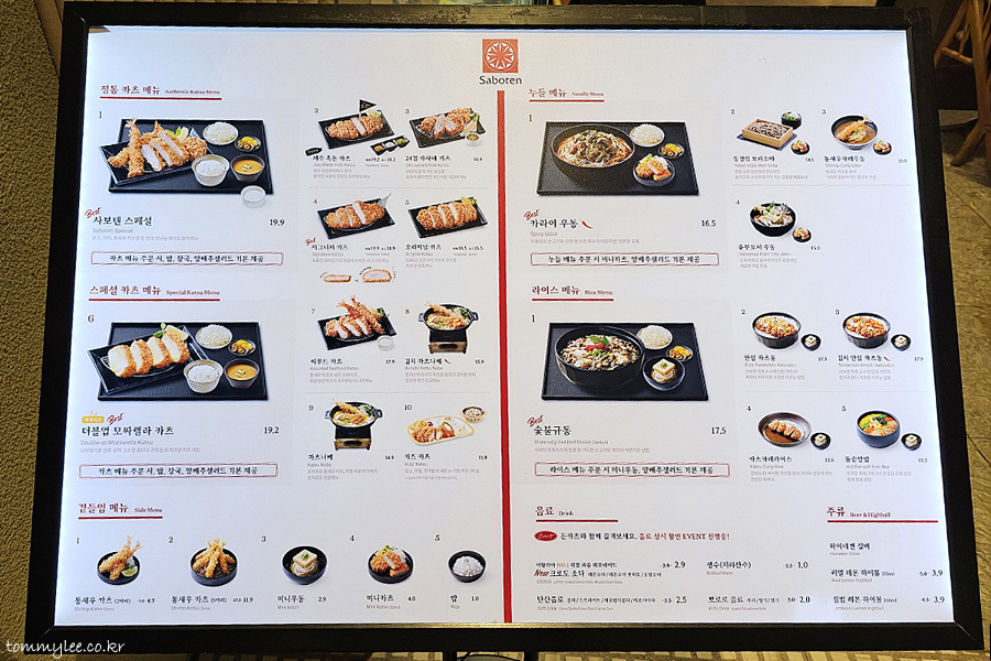 지인분들과 함께 돈가스 회식하러 오랜만에 사보텐을 찾게 되었네요.. 일본식 톤카츠하면 우리나라에선 사보텐입니다.. 시즌 메뉴는 적극적으로 할인하기도 해서 가성비가 꽤 괜찮답니다.. 덕분에 자주 방문하고 있다는..