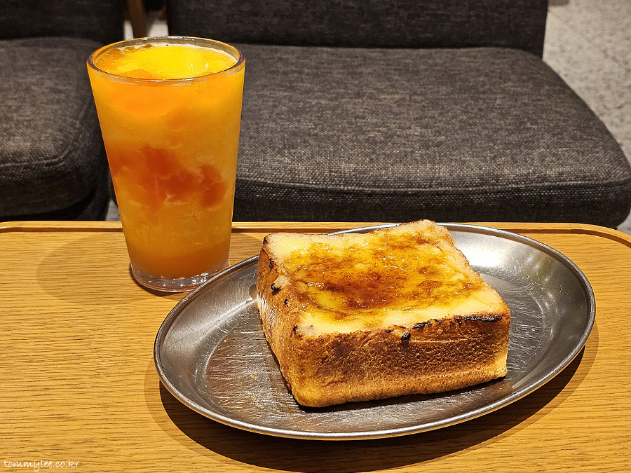 제주 탄제린 블렌디드보다 더 레어템인 크렘 브륄레 토스트.. 이 토스트는 프레시 베이커리가 구현 가능한 매장에서만 만들 수 있는 메뉴라서 특별하다죠..