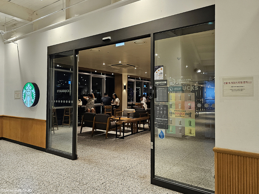 STARBUCKS.. MANGWON HANGANG PARK.. 스타벅스 망원한강공원점.. 영업시간 : 09:00~22:00..