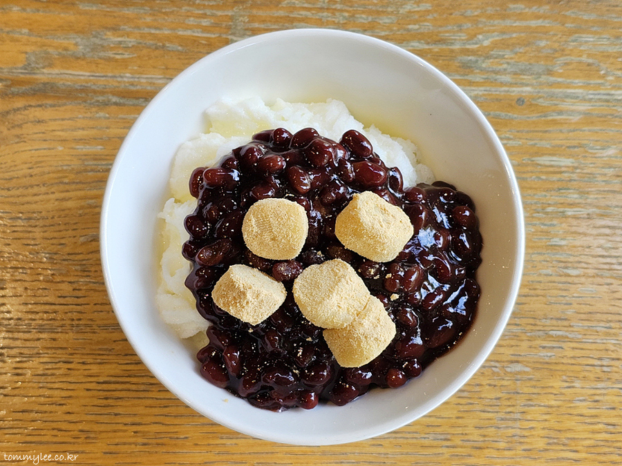 국내산 단팥이랑 우유 얼음은 매년 같은데.. 떡 고명만 조금씩 달라진다고 보시면 되겠는데요.. 올해는 인절미였는데.. 인절미보다는 찹쌀떡이 더 나은 듯..