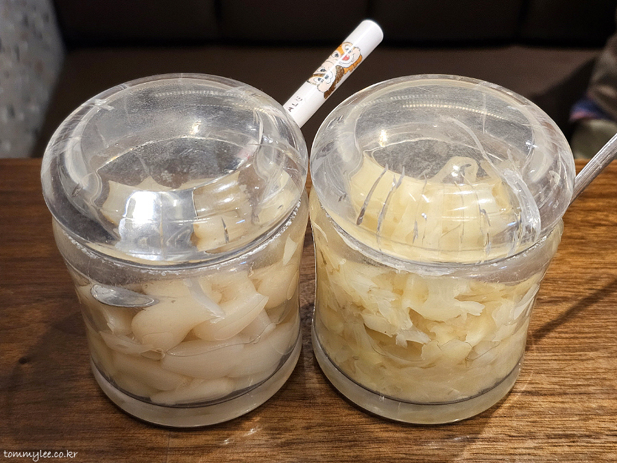 락교와 가리는 테이블마다 세팅되어 있어서 원하는 만큼 양껏 드실 수 있답니다..