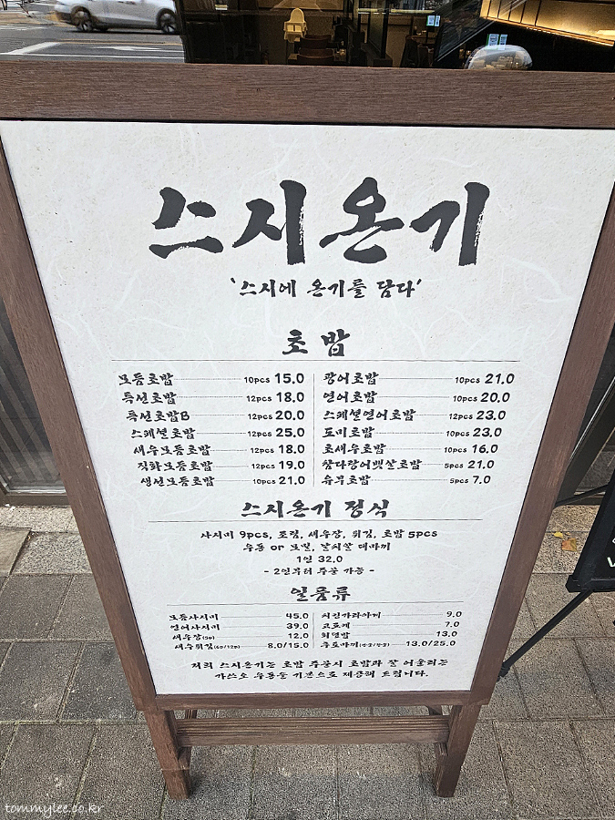 스시온기 메뉴 및 가격.. 모듬초밥 15,000원, 특선초밥 18,000원, 특선초밥B 20,000원, 스페셜초밥 25,000원, 새우모듬초밥 18,000원, 직화모듬초밥 19,000원, 생선모듬초밥 21,000원 / 온기정식 1인 32,000원 / 모듬사시미 45,000원, 연어사시미 39,000원..
