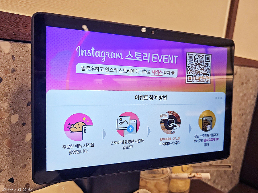 스시온기 인스타그램 스토리 이벤트.. 인스타그램 스시온기 계정을 팔로우하고, 스토리로 스시온기 언급~을 하면서 사진이나 동영상을 공유하면 감자고로케 3P를 증정한다고 합니다.. 스시온기 인스타그램 바로가기 → 요기로..