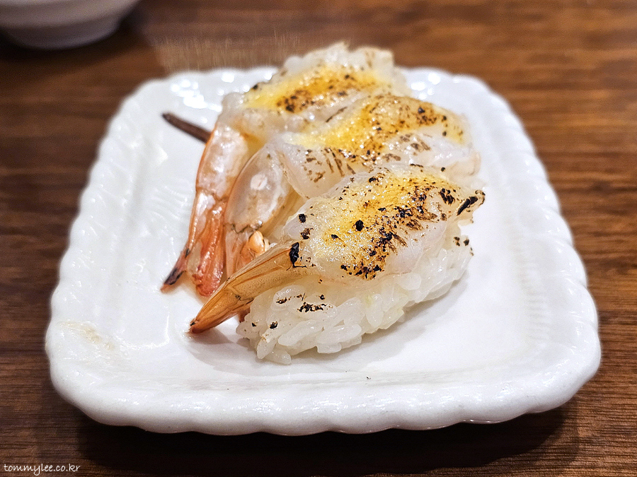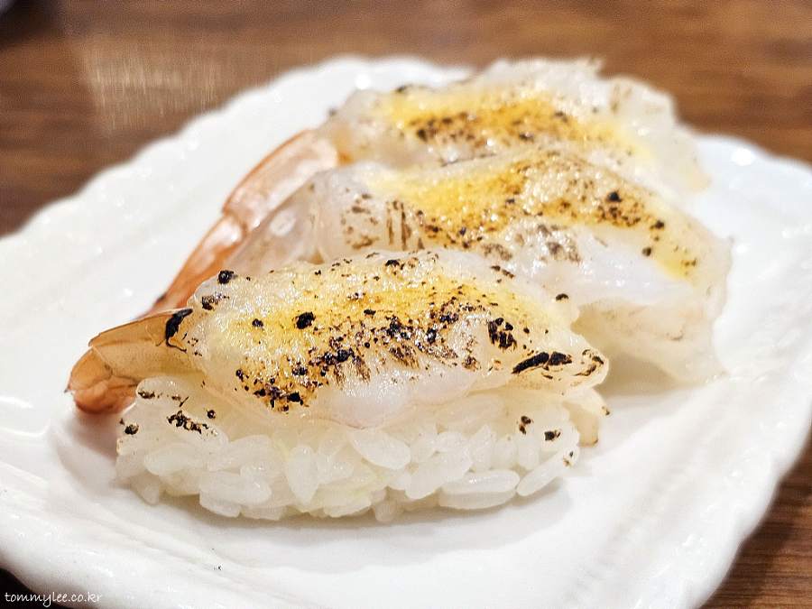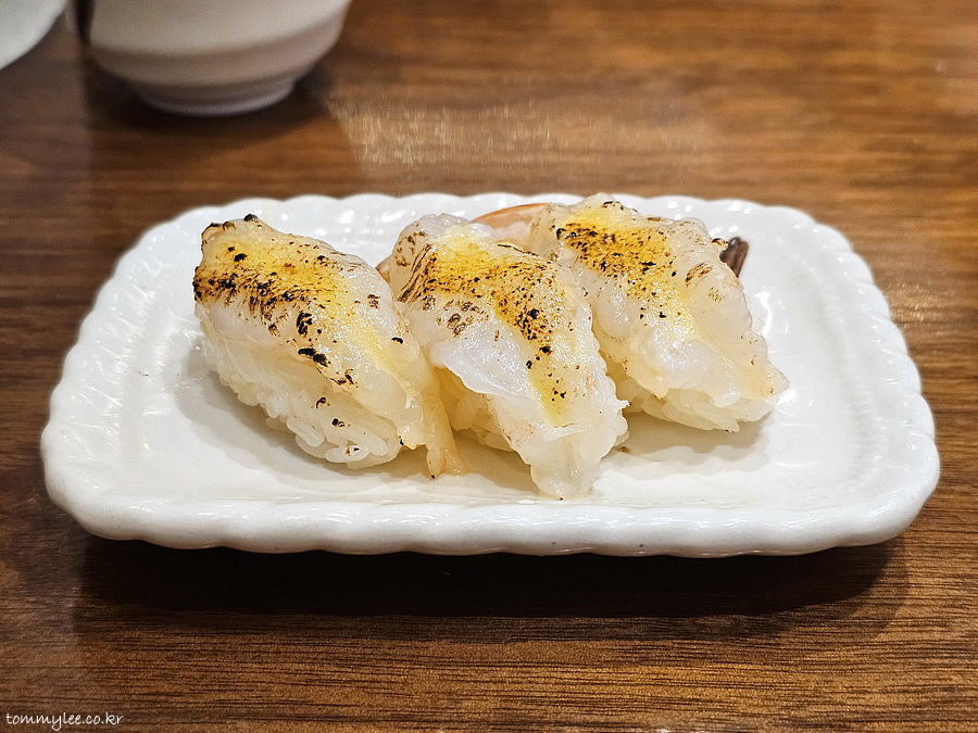 초밥을 서비스로 준다는 건 예습한 후기들에는 없었는데.. 왜 나온 건지 모를 아부리한 생새우 초밥이 서비스로 나왔습니다.. 1인 1개씩..