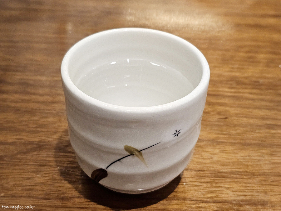 지인분께서 준비해주신 오미즈.. 물 잔이 멜라민이 아닌 본차이나.. 스시온기는 모든 식기가 도자기제.. 나름 품격있는 곳이었음..