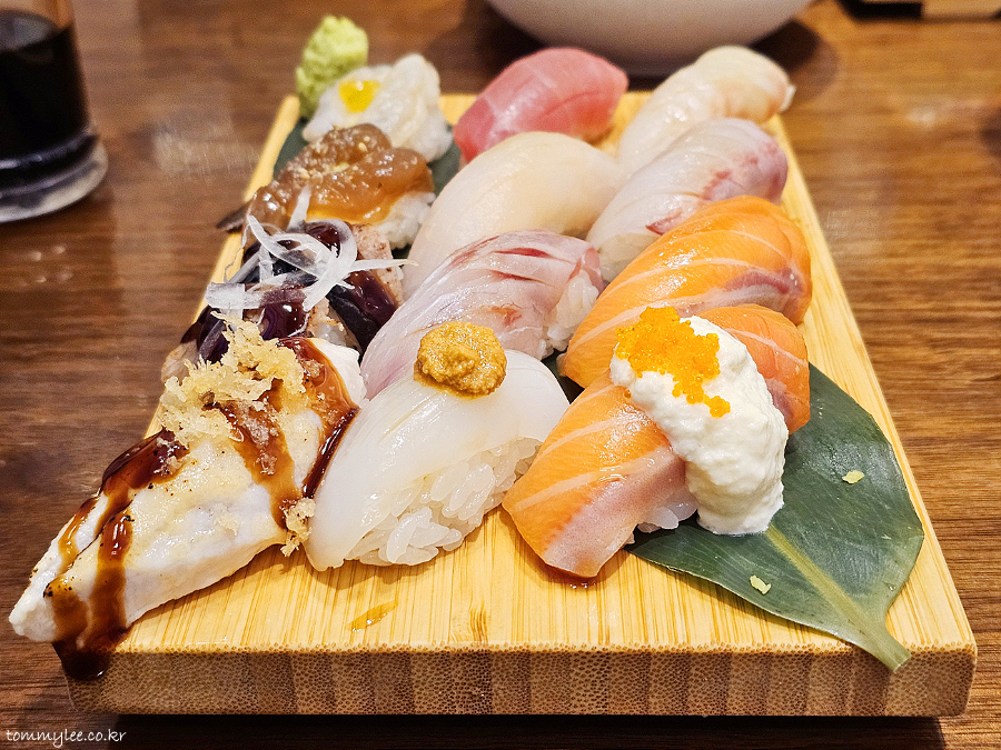 스시온기라는 가게 이름답게 뜨겁지도 차지도 않은 초밥 특유의 뜨뜻미지근한 온도감이 좋다는 지인분의 평가.. 입에 넣었을 때 뭔가 편안한 느낌이 드는 게 역시 중요한 거..