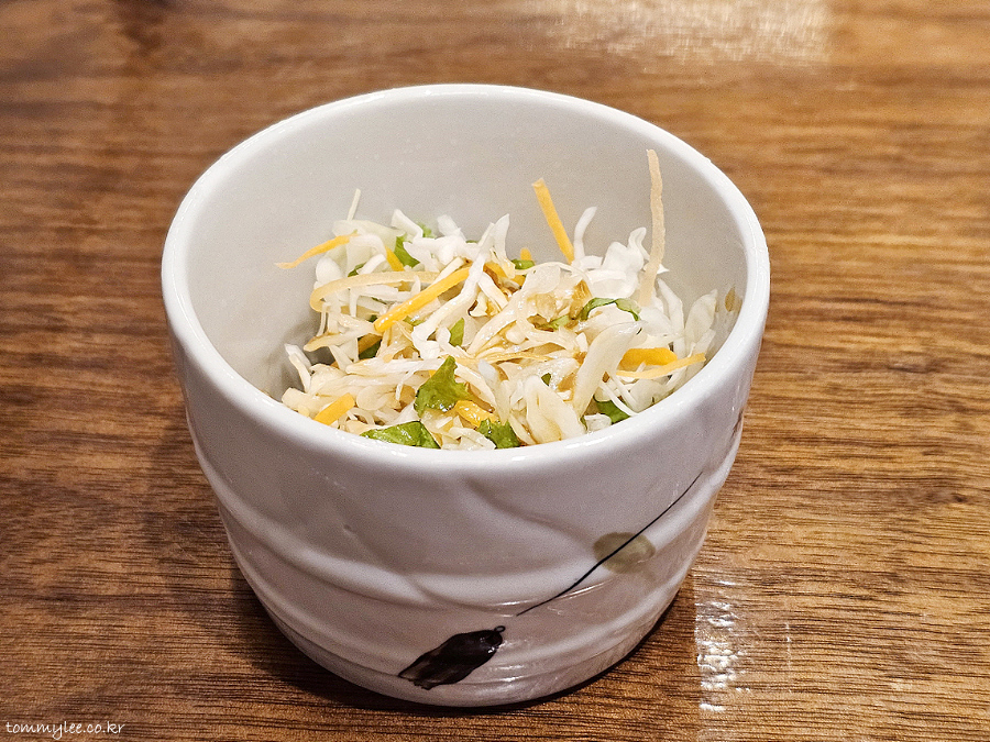 가벼운 기분의 와후 드레싱의 양배추 샐러드.. 예상치 못한 샐러드 제공에 기분 업..