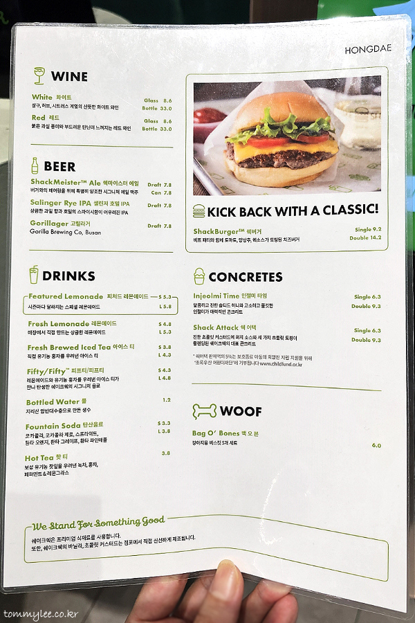 쉐이크쉑 홍대점 메뉴판..