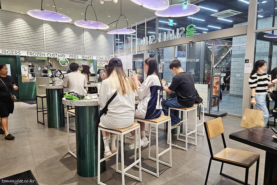 주말이라 많은 손님들로 붐볐던 쉐이크쉑 홍대점이네요.. CGV에서 내려와서 바로 빨려 들어가면 된단..