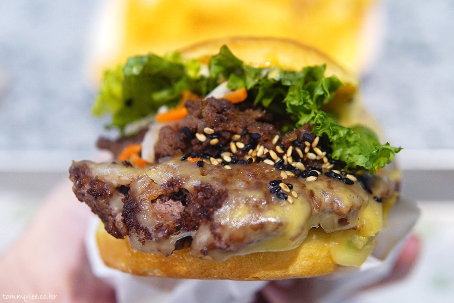 치즈와 패티 위에 진짜 서울식 불고기를 올린 리얼 불고기 버거.. 불고기 토핑 양이 진짜 많아요..
