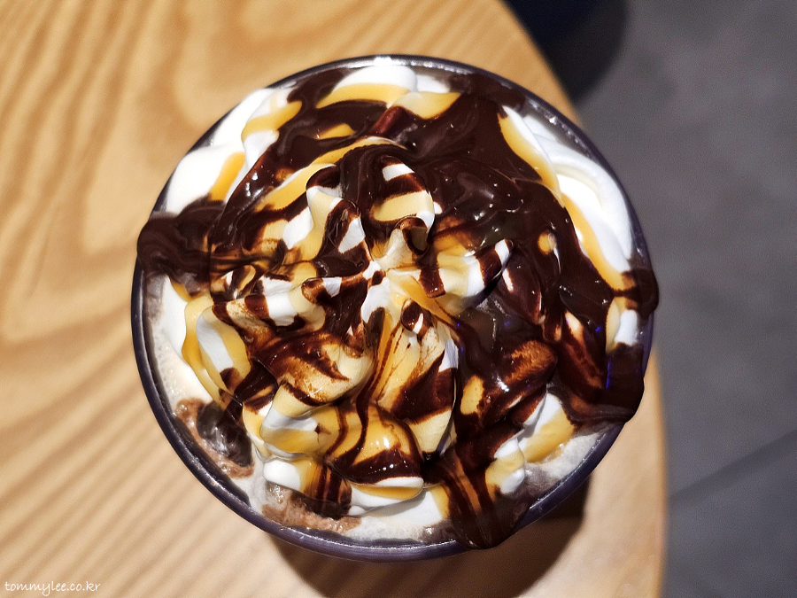 의도하진 않았지만.. 파트너 분의 실수로 에스프레소 칩 대신에 카라멜 드리즐을 잔뜩 공급받을 수 있게 되었답니다.. 뭐 오히려 더 좋다고 감사한 마음으로 더블 드리즐의 휘핑크림 잔뜩 흡입.. ㅋㅋㅋ..