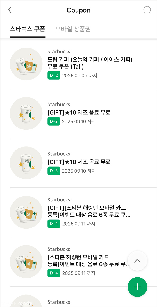 별 10 제조 음료 무료 쿠폰과 스티븐 해링턴 모바일 카드 등록 이벤트 쿠폰 이 둘이 문제였어요.. 통상 쿠폰보다 유효기간을 많이 타이트하게 잡아놨더라는.. ㅠ.ㅠ..