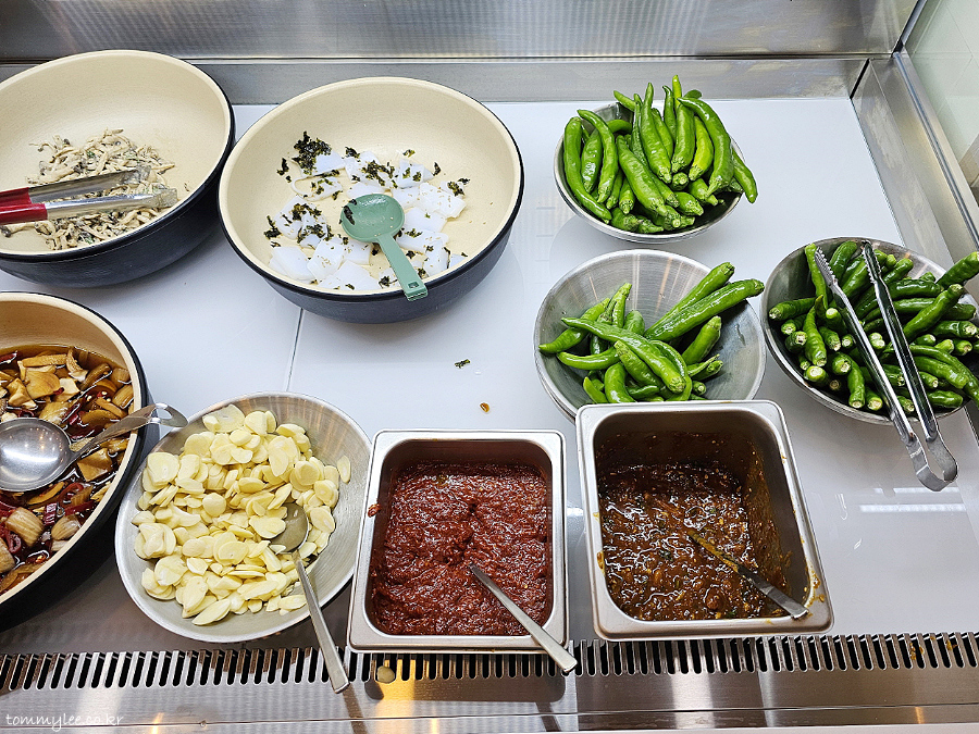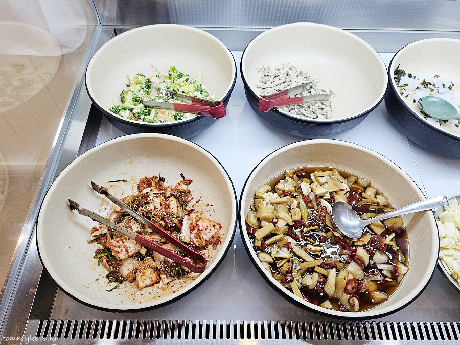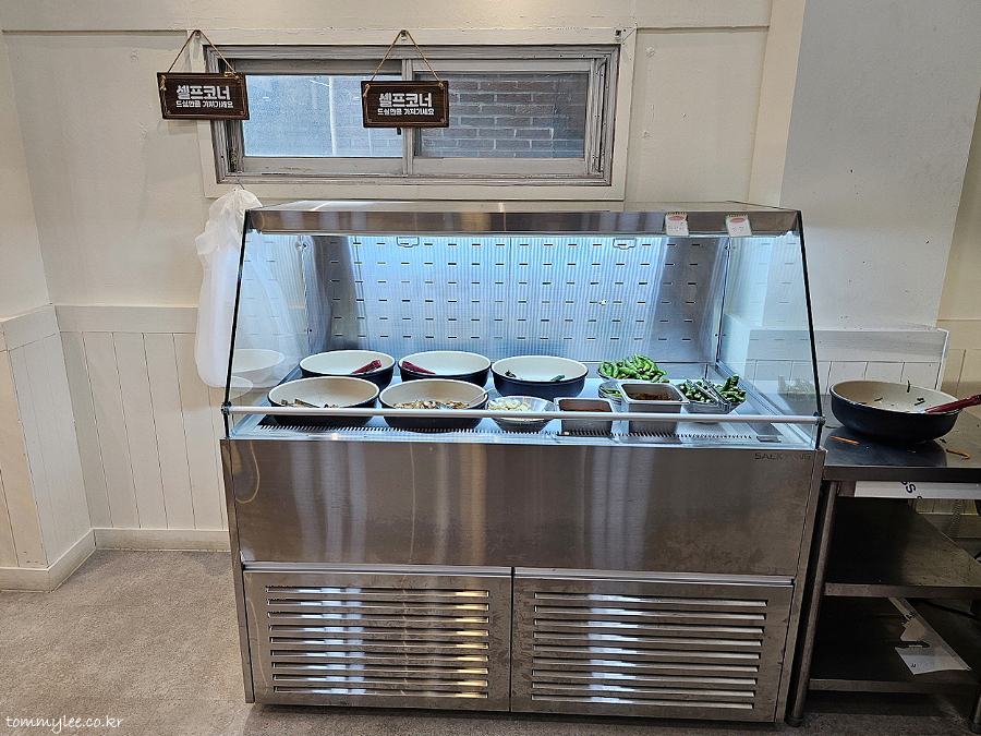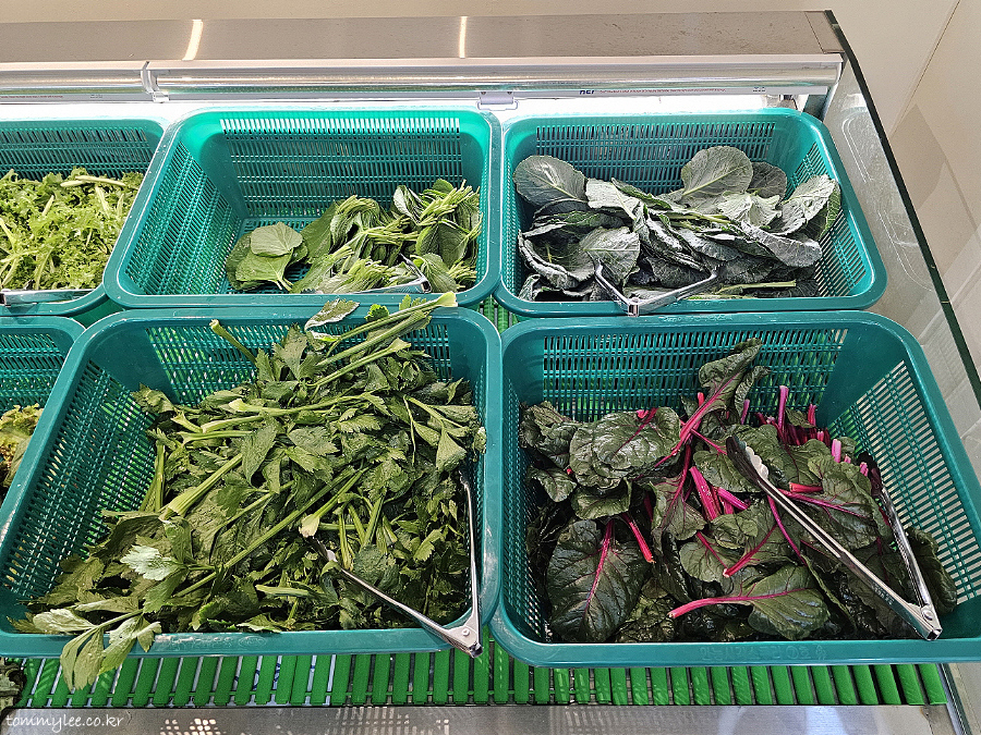 셀프바 구경 나가봤습니다.. 셀프바가 아니고 셀프코너였네요.. 이쪽은 반찬이 있는 거고 쌈채소는 따로 또 있음..