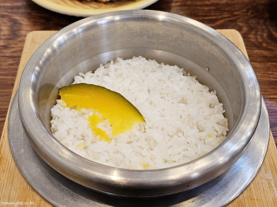 기본으로 솥밥이 나오기 때문에 메뉴 제공 시간까지는 주문 후 대략 12~15분은 걸린다고 보셔야 할 듯싶습니다.. 근데 밥이 나오기전까지 찬이 아무것도 깔리지 않았음.. 이 시간에 물밖에 마실 수 없고 시간도 길어서 지루해요..