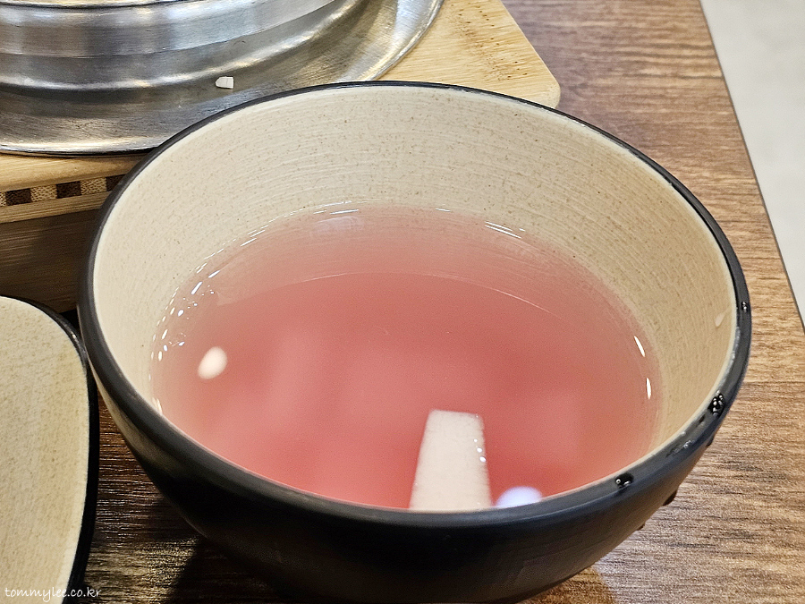 기본찬인 물김치..