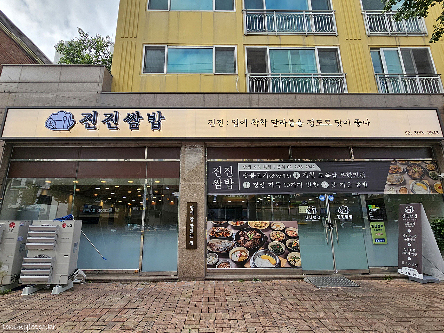 진진쌈밥은 응암시장에서 도보 3분 정도 거리에 있는 벧엘블레스빌 1층에 자리하고 있답니다.. 응암시장이랑 신진공고 중간의 애매한 위치이긴 합니다.. 전에는 봉평메밀막국수랑 곤드레나물밥을 파는 대관령가는길이라는 강원도음식점이 오래 영업했고, 그다음엔 원조양평서울해장국이라는 이름의 24시간 해장국집이 들어왔는데, 꽤 버티시다가 문을 닫고.. 지금은 진진쌈밥이 들어와 있습니다.. 목이 그리 좋은 자린 아니에요..