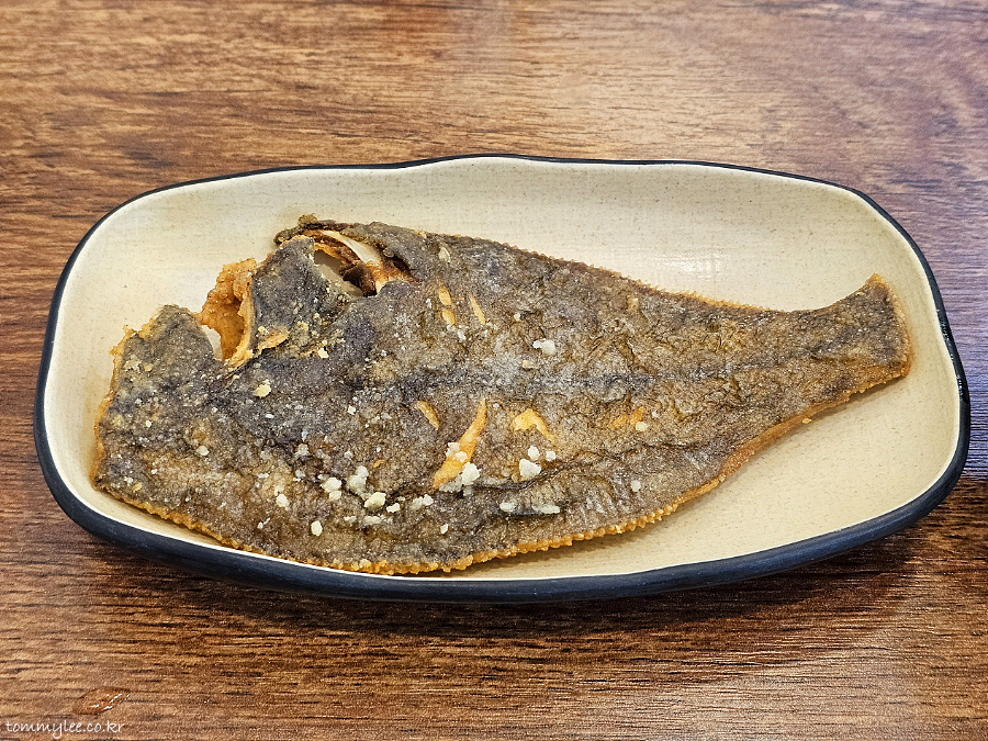 드디어 찬이 깔리네요.. 이 큼직한 생선구이가 기본 제공입니다.. 가자미구이가 나온 모습이 되겠고요..
