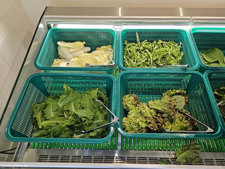 숯불고기만큼 비중이 컸던 쌈야채들의 모습입니다.. 다양한 쌈야채 들은 셀프바에서 리필이 가능합니다..