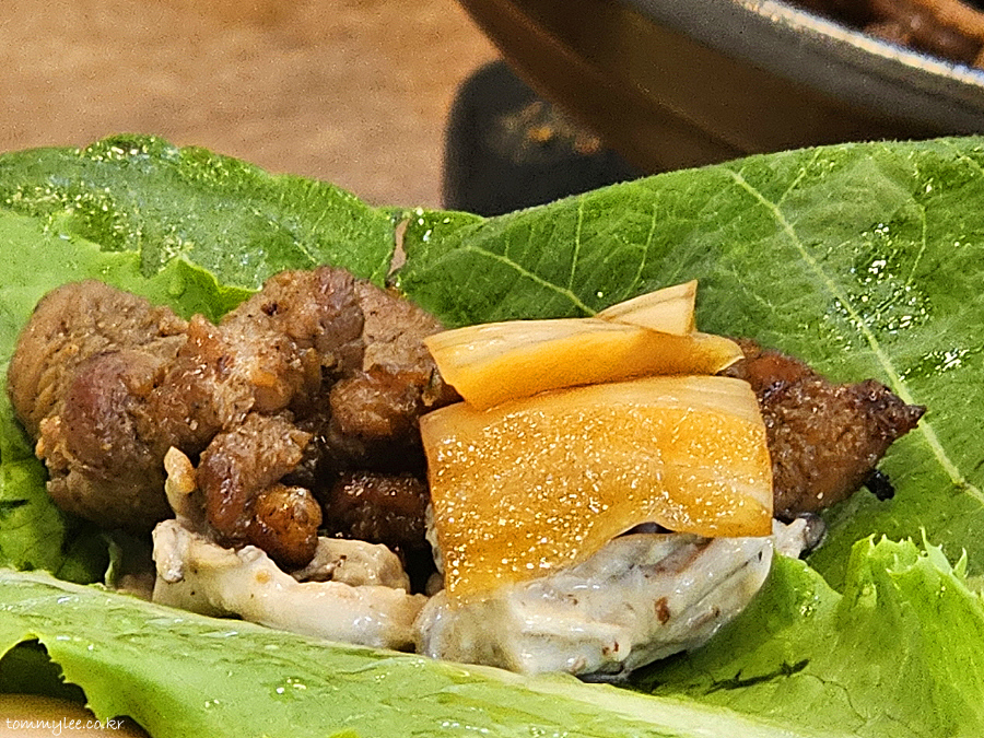 잡채 리필이 중단되어서 지인분께서 매우 아쉬워하셨어요.. 어쨌거나 쌈을 많이 싸 먹을 수 있어서 전 너무 만족스러웠던..