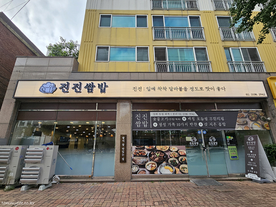 JINJIN SSAMBAP.. 진진쌈밥.. 영업시간 : 평일 11:00~15:00, 16:30~21:30, 주말 11:00~21:30.. 주소 : 서울 은평구 응암로 263.. 전화 : 02-2138-2942..
