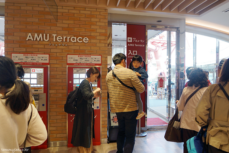 AMU TERRACE.. 아뮤테라스라고 써있는 이곳에서 관람차 티켓을 구입하시면 된다는.. 저희는 큐트패스로 할인을 받아야 했는데.. 티켓 자판기로는 할인 티켓 구매가 불가능해서..