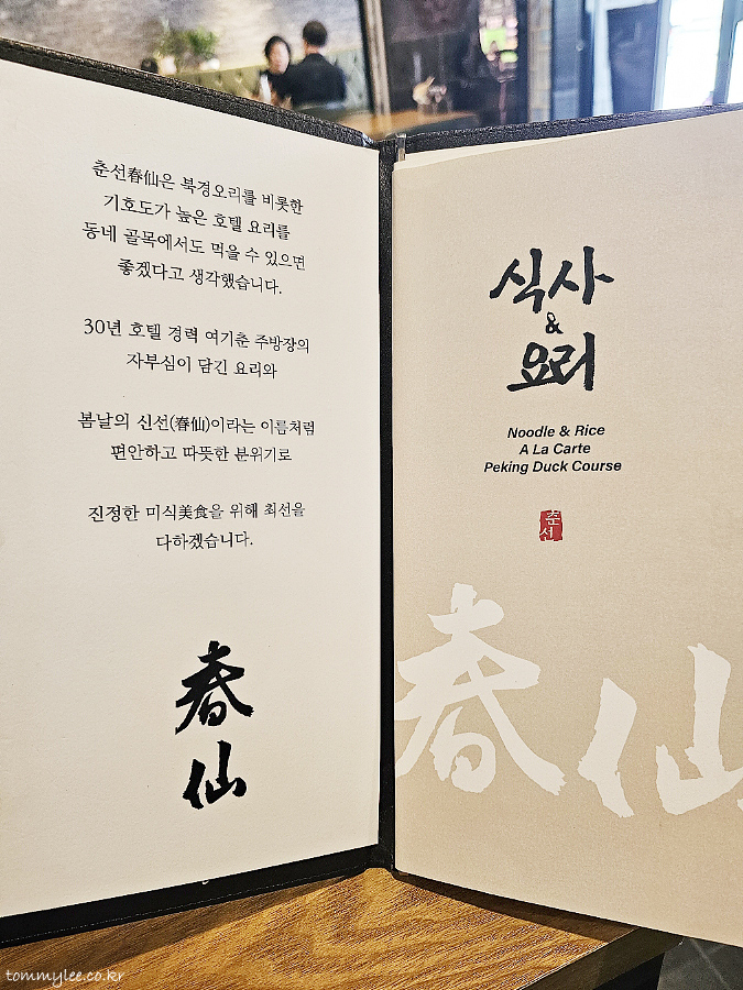 춘선은 봄날의 신선이라는 뜻이고.. 30년 호텔 경력의 여기춘 셰프가 운영하는 중식당이란 설명..