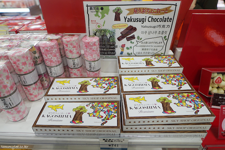 카고시마 스카이샵 오리지널 상품이 있네요.. 저는 처음 봐요.. 야쿠스기 쵸코레토.. 야쿠삼나무 초콜릿이라고 친절하게 한글로 써있었단.. 가격은 741엔(7,410원)..