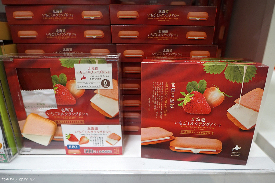홋카이도한정이라고 써있는데 카고시마에서 팔고 있는.. 홋카이도 이치고 밀크 랑드샤.. 500엔(5,000원).. 북해도라고 써있는 제품들엔 각별히 주의를.. ㅡㅡㅋ..