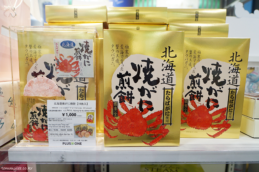 아니 이런걸 카고시마에서 왜 팔지 하는 것들이 꽤 있네요.. 홋카이도 타라바가니 야키가니 센베.. 1,000엔(10,000원)..