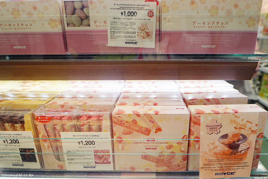 로이즈 아몬드 쵸코 사무라베리 & 사쿠라화이트.. 1,000엔(10,000원).. 후르츠바 초콜릿.. 1,200엔(12,000원)..