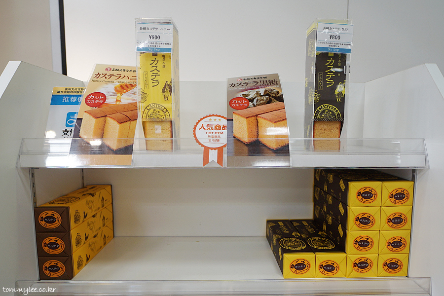 히요코 만쥬 다음으로 인기가 있었던 게 바로 이 나가사키 카스테라입니다.. 후쿠사야 포장이랑 비슷하긴 한데.. 나가사키 겐키도혼포라는 안유명한 곳의 카스테라.. 800엔으로 저렴하긴 한데.. 선물용으론 비추.. 근데 선택권은 없어요.. ㅋㅋㅋ..