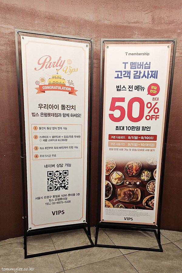 T멤버십 고객 감사제.. 빕스 전 메뉴 50%할인이라고 배너가 크게 걸려 있었고요..