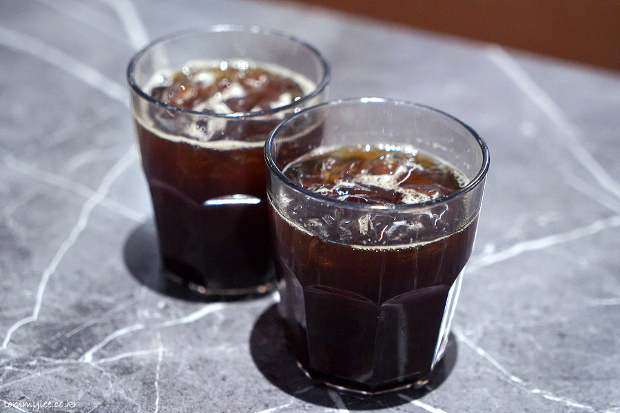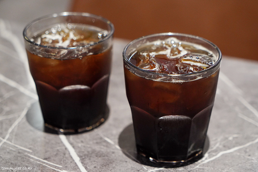 아이스 아메리카노.. 머신 2대라서 한 번에 2잔 제조 가능..