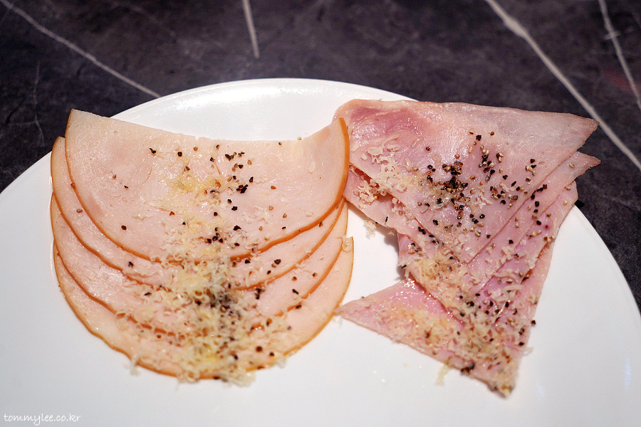 저는 샤퀴테리존 위주로 공략.. 햄은 이렇게 2종.. 전엔 살라미도 있었는데 없어진 듯??.. 암튼 치즈를 햄으로 감싸서 햄치즈쌈 냠냐므.. ㅋㅋㅋ..
