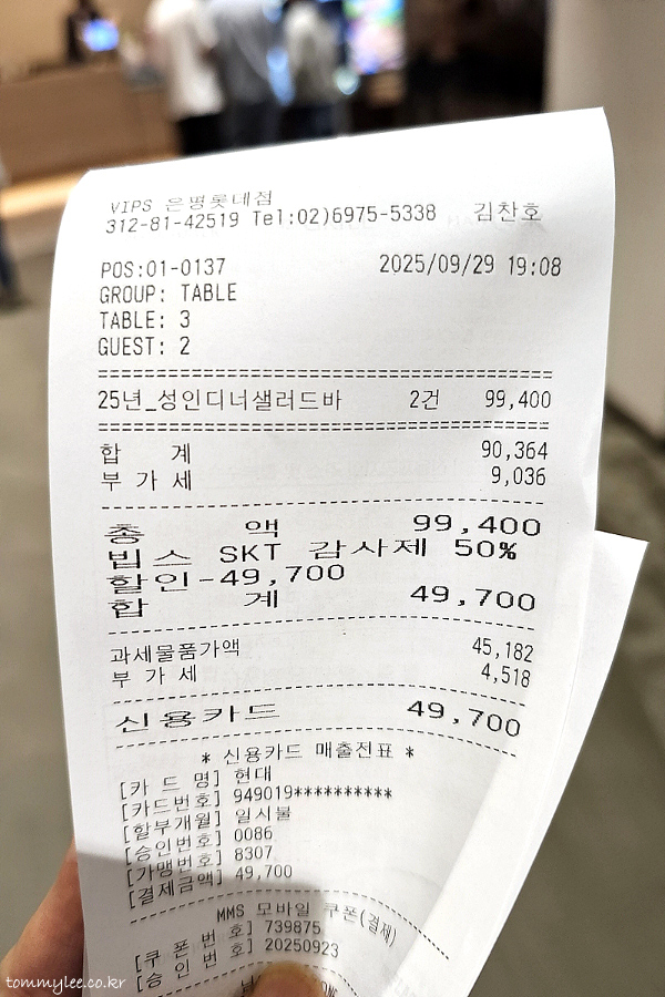T멤버십 고객감사제 참여 영수증 인증샷.. 진짜 50% 할인되어서 반값에 먹을 수 있었답니다.. 원래 이 가격이었으면 좋겠다고 막.. ㅠ.ㅠ..