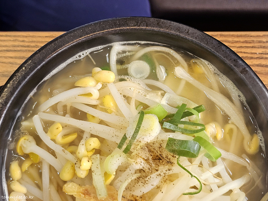 점심 시간이라서 손님이 많아서 실내샷은 안타깝게도 담아볼 수가 없었네요.. ㅠ.ㅠ.. 근데 국밥만 파는 곳이 아니었단.. 생각보다 메뉴가 훨씬 많네요.. 의외로 통돼지 김치찌개가 콩나물국밥과 함께 투탑 메뉴였고.. 즉석 김치찌개 때문에 가스로스터 테이블이었음..