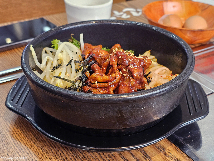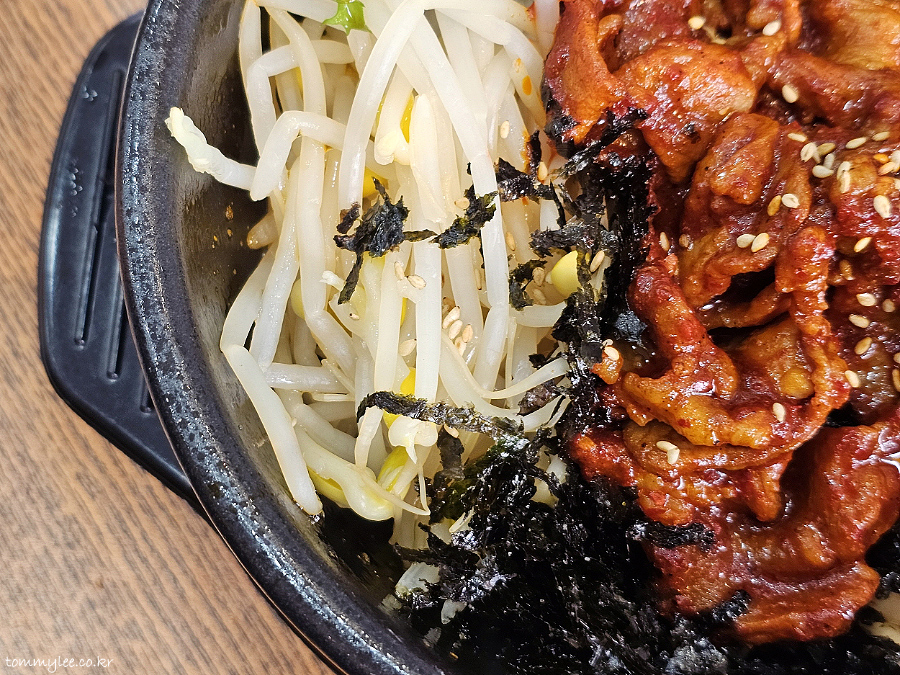 콩나물국밥집답게 제육 비빔밥에도 콩나물이 잔뜩 들어가고요..