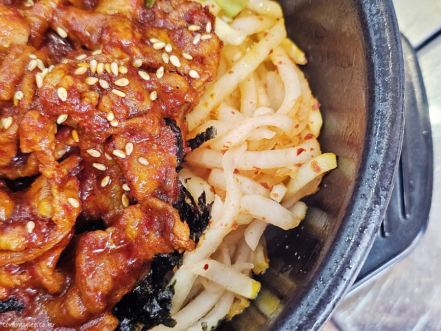 SPICY PORK STONE POT BIBIMBAP.. 제육 돌솥 비빔밥.. 6,800원..