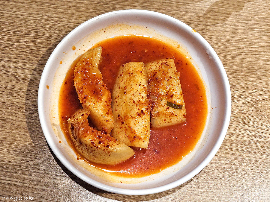배추김치는 가위로 썰어서 먹는 방식.. 리필은 자유롭지 않습니다..