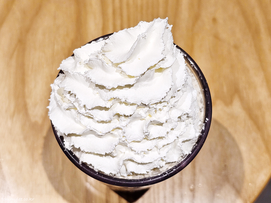 우리나라는 90%이상만 제거하면 디카페인 표기를 할 수 있어 조심(--) 해야 한다고 합니다.. 그나저나 오늘은 엑스트라 휘핑크림을 제대로 올려 주셨네요..