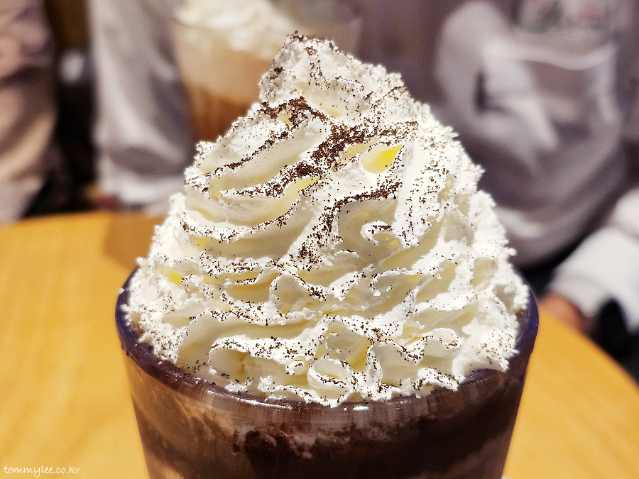 산처럼 높이 쌓아주신 엑스트라 휘핑크림의 아리따운 자태에 에스프레소 칩을 솔소르.. 이런 훈훈한 비주얼 오랜만이네요.. 여름이 끝나서 더위 먹어서 흐믈흐믈 대는 휘핑을 더 이상 안만나도 되는 것일지..