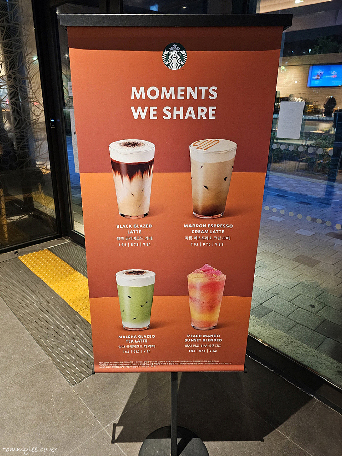MOMENTS WE SHARE.. 스타벅스의 가을 메뉴.. 블랙글레이즈드라떼, 마롱에스프레소크림라떼, 말차글레이즈드티라떼, 미치망고선셋블렌디드.. 추석 연휴기간에는 1시간 일찍 마감했답니다..