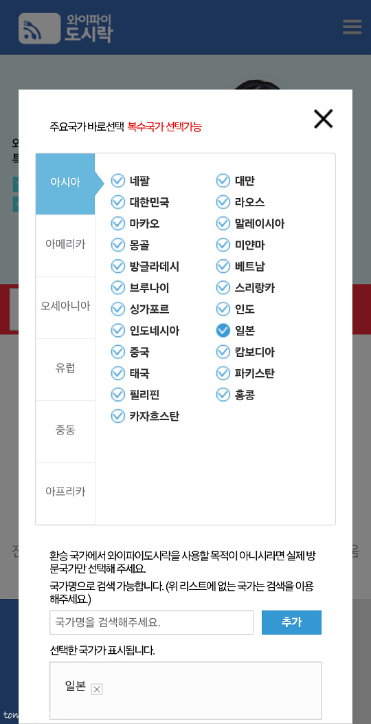 국가 선택에서 아시아-일본 선택 후 예약하기..