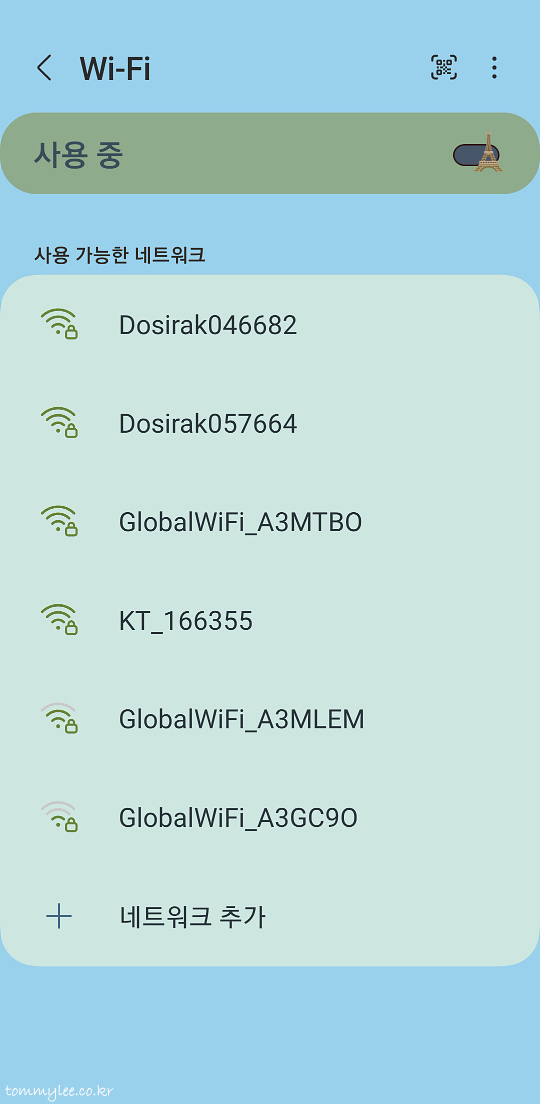 사용 가능한 네트워크가 좌르르 뜨는데요.. 도시락 단말기 뒷면에 있는 내 단말기를 선택하고..