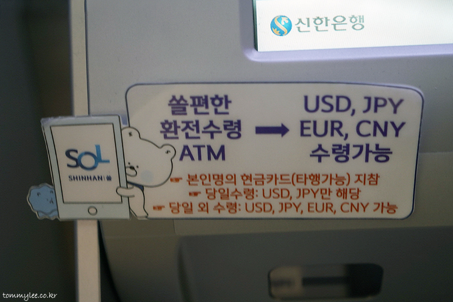 신한은행 환전소 앞에 있는 ATM 기기였네요.. 이용하시는 분들이 의외로 별로 없어서 편하게 환전 수령을 할 수 있었네요..