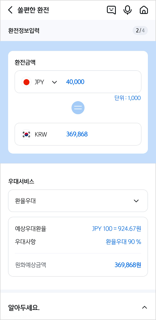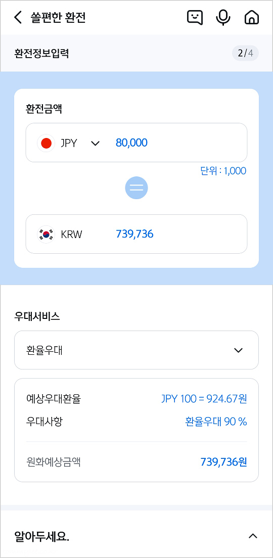 쏠 편한 환전.. 날짜를 미리 선택하고 원하는 곳에서 찾아가세요.. 최대 90% 환율 우대 혜택을 받을 수 있어요..